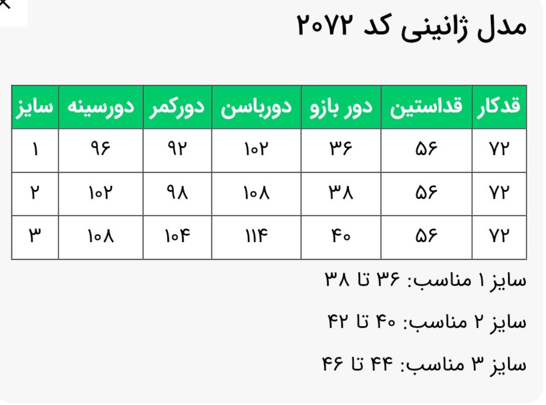 🔺سایز 2 مناسب: 40 تا 42