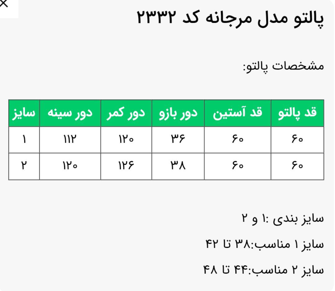 🔺سایز 1 مناسب: 38 ت 2 مناسب: 44 تا 48