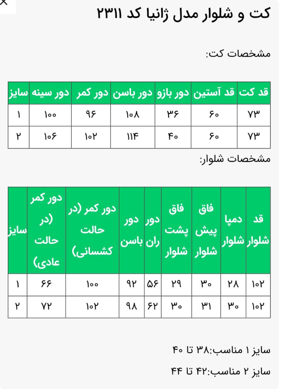 🔺سایز 2 مناسب: 42 تا 44